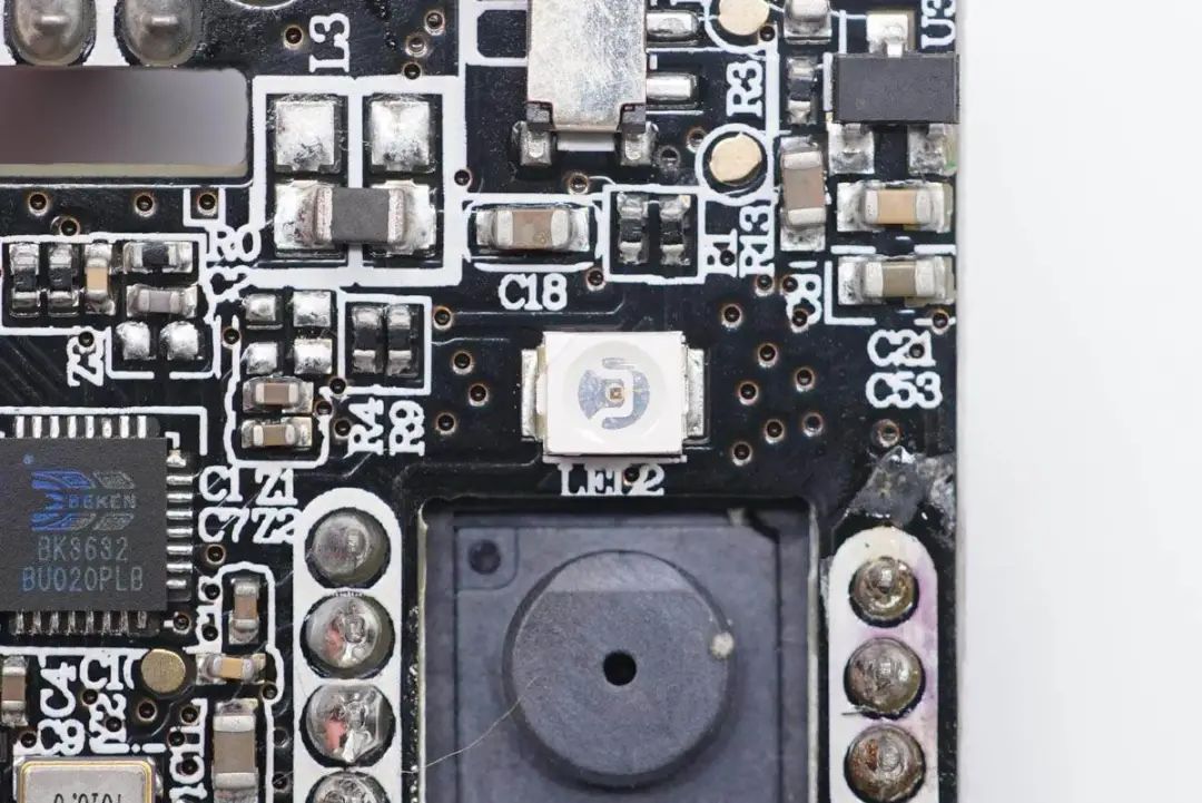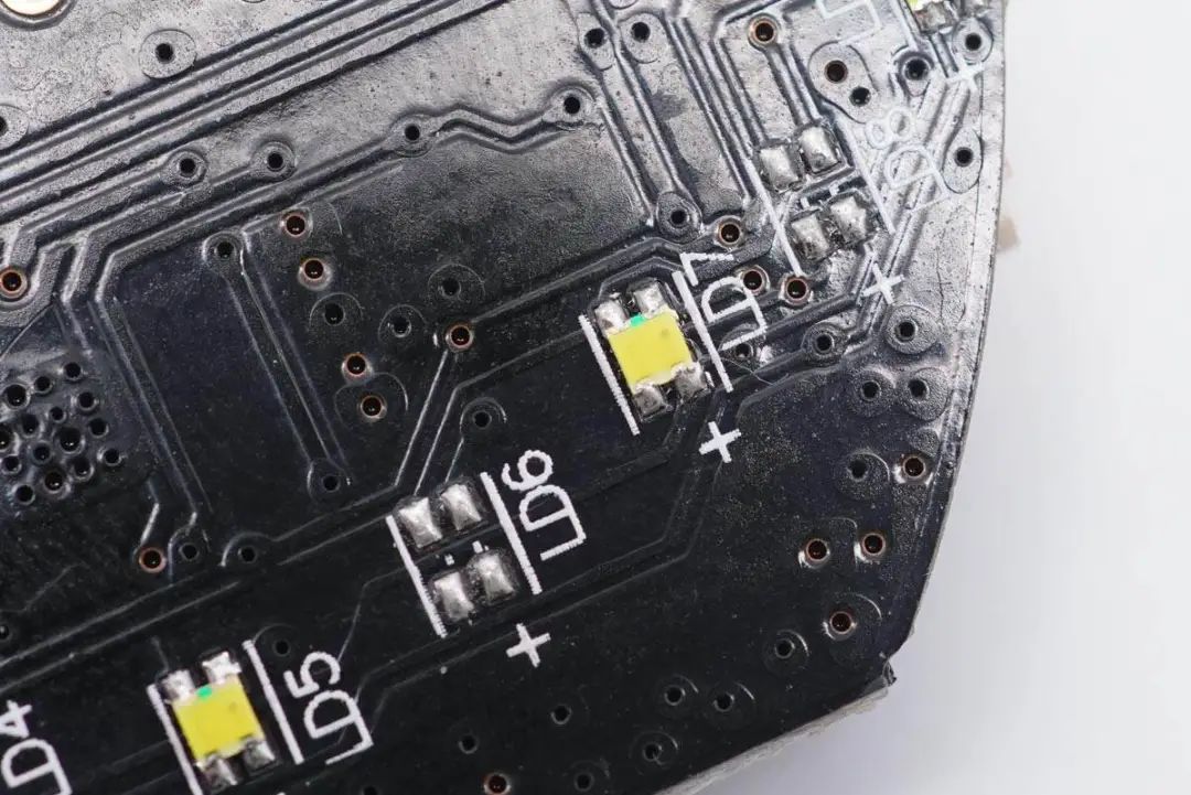 發(fā)光二極管特寫,下方的光電感應(yīng)器底部中心設(shè)有小孔。