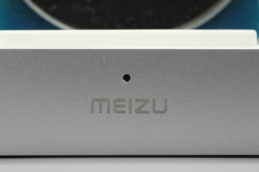 底座前端印有MEIZU品牌,并設(shè)有一顆LED充電指示燈。