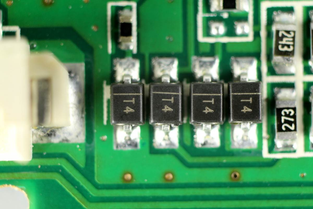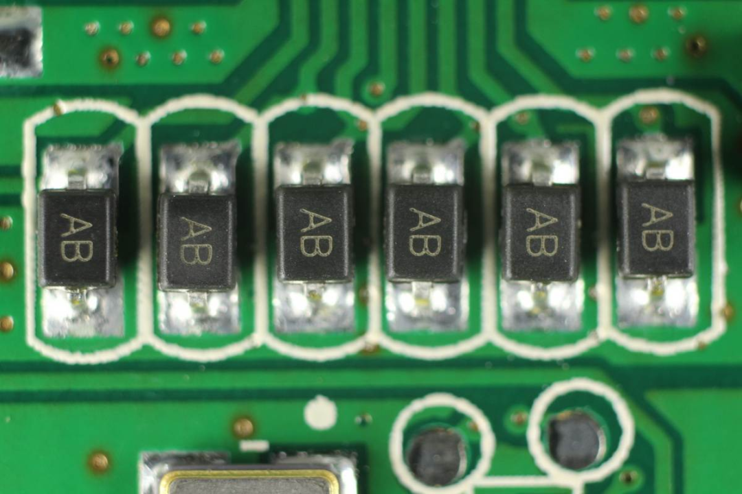 絲印AB的TVS,用于數(shù)據(jù)端口過壓保護。