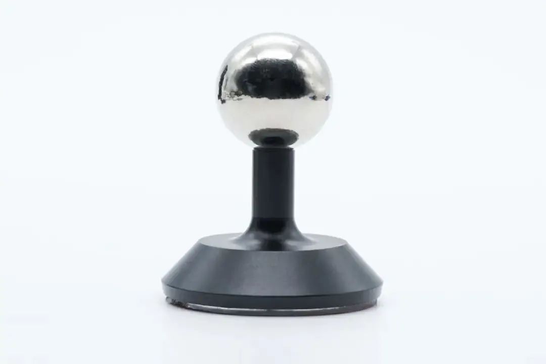 This magnetic wireless charger is composed of two parts: a pillar with a spherical top and a disc-shaped wireless charging board. After magnetic attraction, the charger board supports all rotation angle, making it convenient for users. The pillar base is equipped with a USB-C interface. The diameter of the charging board is 60.02mm, and thickness is 9.73mm.