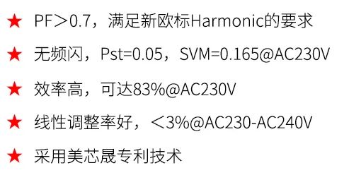 針對新歐盟標(biāo)準(zhǔn),美芯晟MT7618N和MT7619N應(yīng)運(yùn)而生。其中MT7618N是一款PF>0.7無頻閃的線性解決方案,MT7619N是基于MT7618N內(nèi)置整流橋的解決方案。