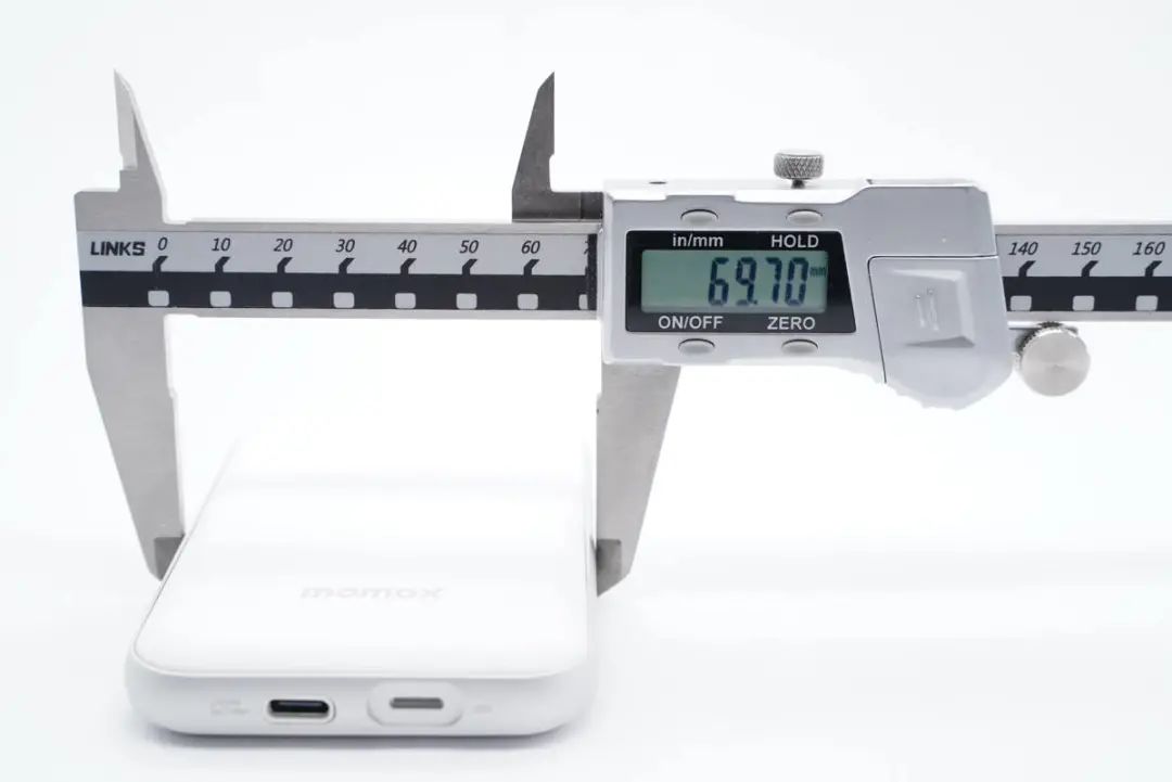 實(shí)測充電寶機(jī)身長度為109.74mm。