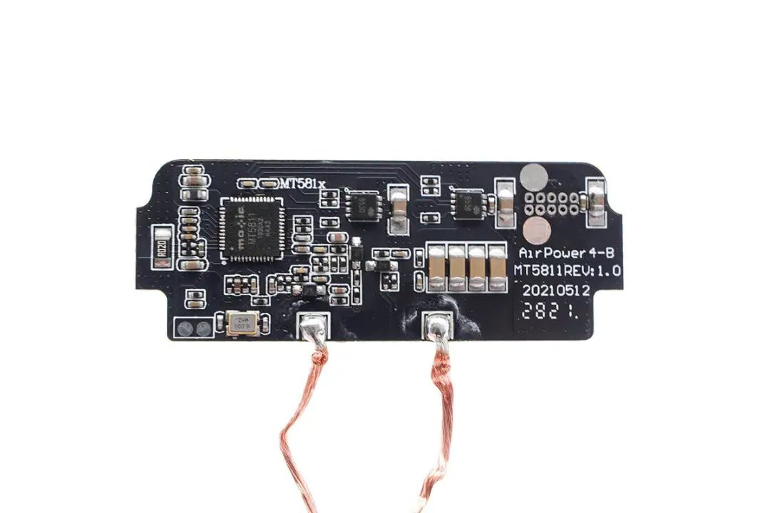 充電頭網(wǎng)通過拆解了解到,充電寶內(nèi)置兩塊PCB小板,之間有泡棉支撐。無線充方案采用美芯晟MT5811,這是一款高度集成的無線充電發(fā)射芯片,符合Qi標(biāo)準(zhǔn)以及高達(dá)15/50W的輸出功率,還集成ARM M0 處理器,總的來說在體積、兼容性、性能、效率等方面的表現(xiàn)都很好,能夠滿足客戶的各種要求。