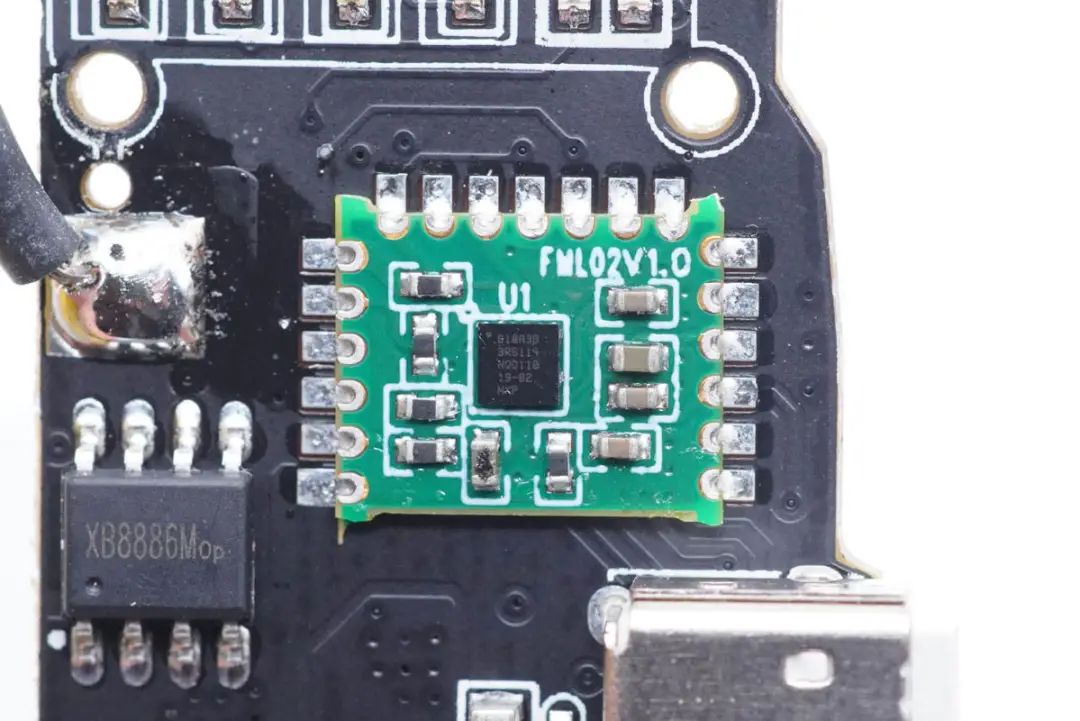 另一塊小板正面設(shè)有電感、接口保護(hù)MOS管、鋰電保護(hù)芯片等器件。